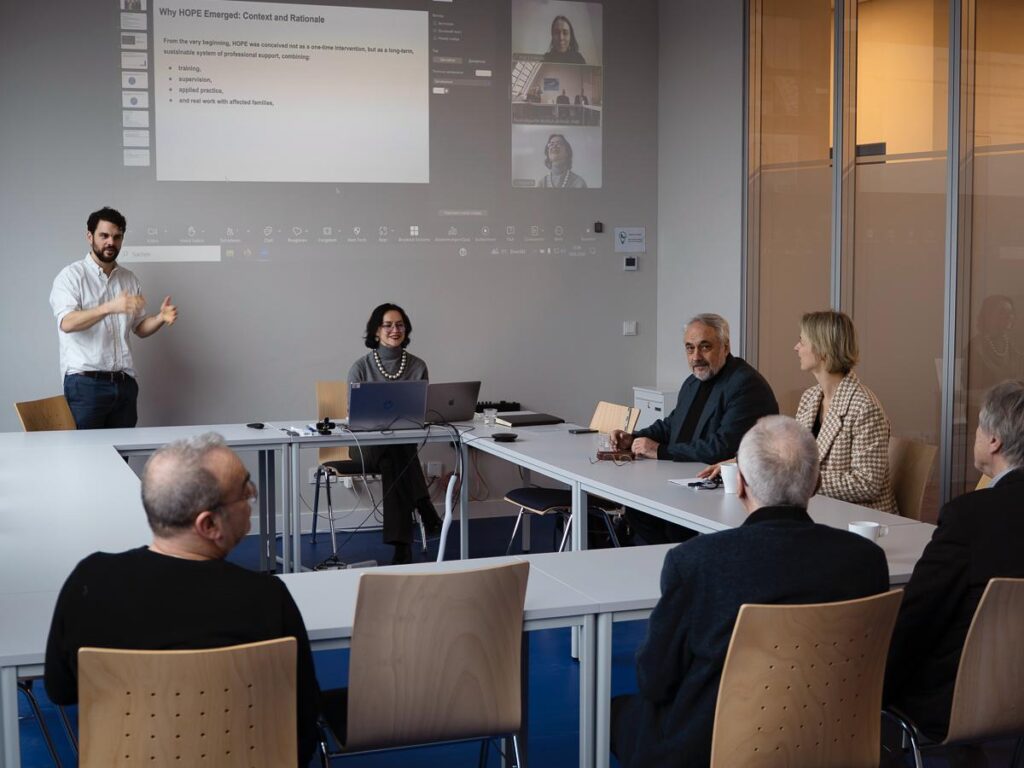 Під час робочого візиту до університету «Вища психологічна школа» (Берлін) Панок Віталій Григорович, директор Центру, доповів про хід виконання спільного німецько-українського проєкту «HOPE – допомога в подоланні» з навчання українських психологів, що виконувався ГО «Агенція Розвитку Проєктних Ініціатив» у партнерстві з Українським науково-методичним центром практичної психології і соціальної роботи протягом 2022 – 2025 років.